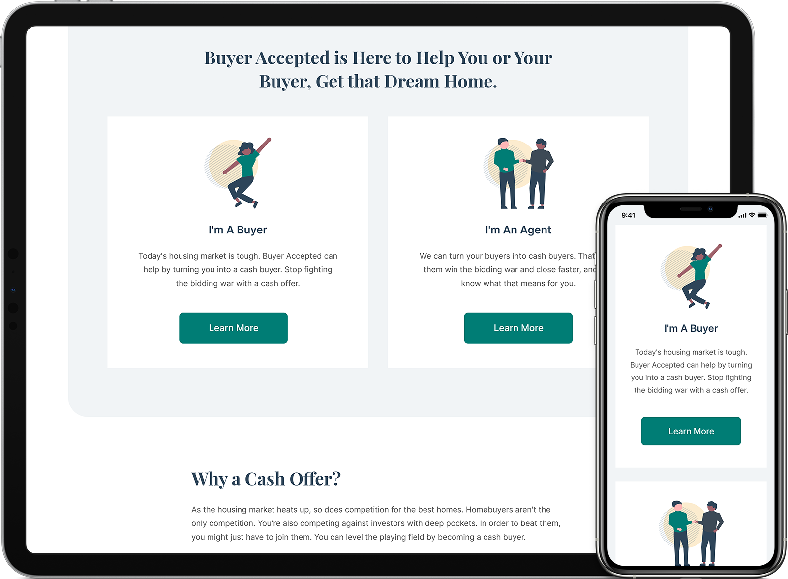 The Buyer Accepted site has been up for short while; however, the Executive V.P. of marketing wanted to revamp the style, as it was rushed and designed by the head of the graphic design team. The Marketing team wanted to update the styling to match what is current and considered modern within the industry. Another issue that was found was that the pages lacked a good structure of information.