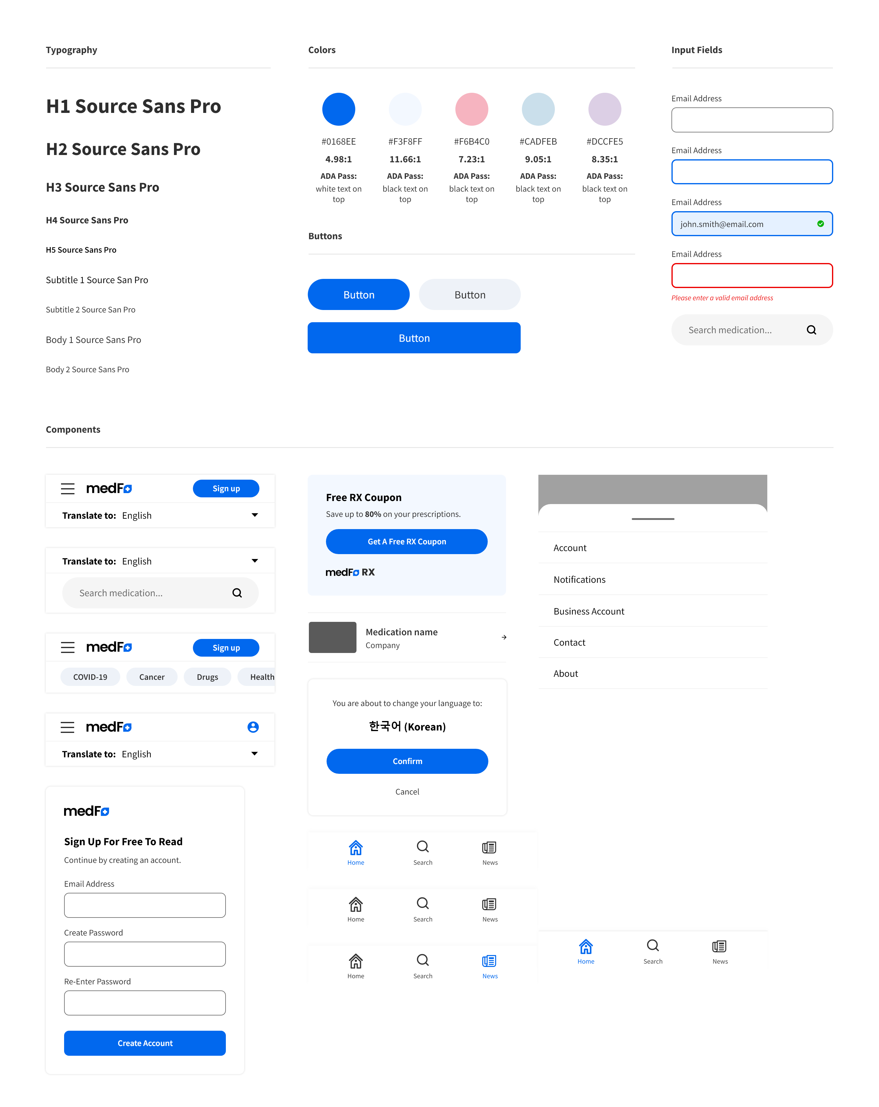 As most second generation children speak English, and may have lost some ability to speak or read their parents' language, the app needed an easy way to toggle between languages. With a simple dropdown, the children and parents could look up medication and explore the entirety of the application in their preferred language.